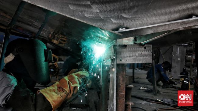 Proses pengelasan rangka kapal jenis pemadam kebakaran BPBD dengan panjang 10 meter, di galangan kapal di Tangeran memakan waktu 10 bulan.