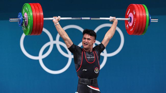 Rizki Juniansyah keluar sebagai pemenang cabor angkat besi putra 73kg Olimpiade 2024 usai berhasil mencatat total angkatan 354 kg dengan rincian 155 kg angkatan snatch dan 199 kg angkatan clean and jerk.