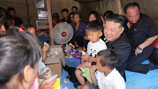 Pemimpin Korea Utara Kim Jong Un mengunjungi kembali daerah yang terendam banjir di dekat perbatasan negara itu dengan China