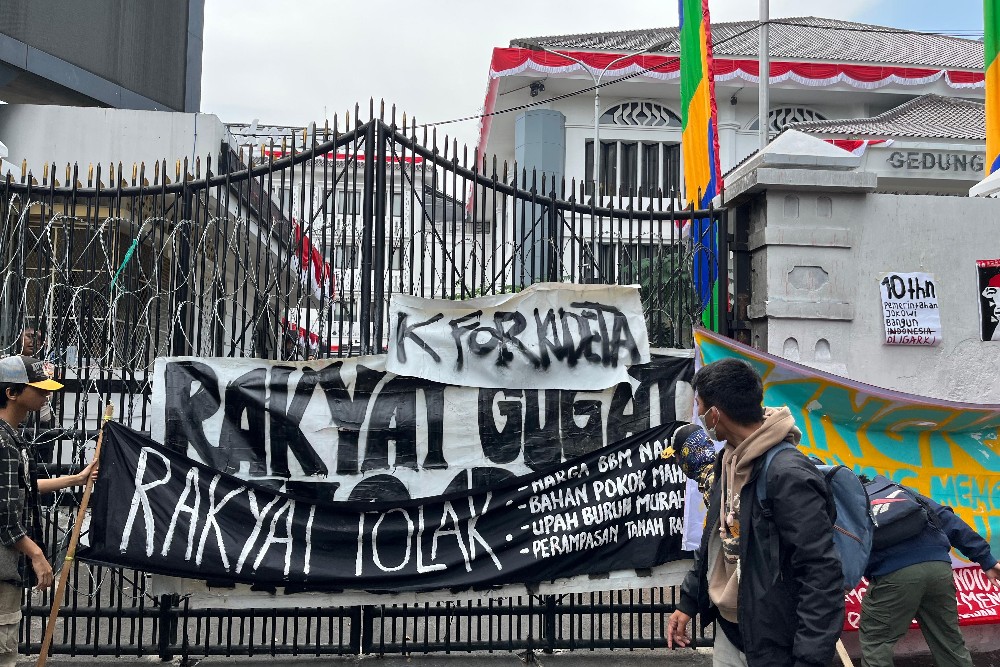 “Di depan DPRD ini, kami menunjukkan bahwa sudah tidak percaya pemerintahan atau eksekutifnya karena kita masyarakat tertindas. Sehingga menunjukkan kemuakan dan kemarahan kepada DPR dan stakeholder lain sebagainya,” jelasnya.