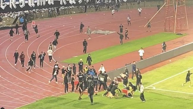 Namun kerusuhan mereda setelah polisi masuk ke dalam stadion dan memukul mundur oknum bobotoh untuk kembali ke tribune.