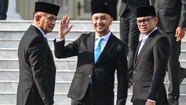 Mantan vokalis Nidji ini membagikan beberapa foto momen pelantikannya di Istana Negara, Jakarta, kemarin. Salah satunya ketika ia menjabat tangan Prabowo. Giring didampingi oleh sang istri, Cynthia Riza dalam kesempatan tersebut.