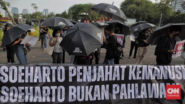 “Kami melihat dengan sejumlah fakta dan juga sejumlah kejahatan yang dilakukan oleh Suharto selama masa kepemimpinan 32 tahun mulai dari pelanggaran HAM berat pelanggaran HAM dan juga kekerasan negara, praktik korupsi-kolusi nepotisme kejahatan pembunuhan kejahatan lingkungan dan agraria,” katanya.