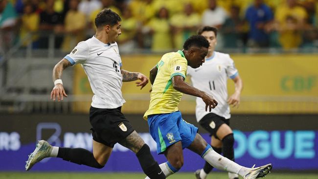 Brasil bermain imbang 1-1 melawan Uruguay dalam lanjutan Kualifikasi Piala Dunia 2026 zona CONMEBOL di Arena Fonte Nova, Bahia, Rabu (20/11) pagi WIB.