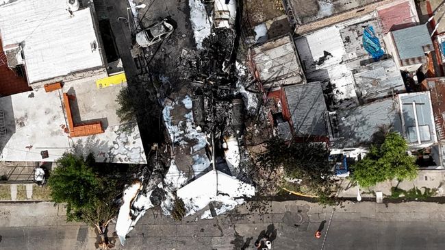 Sebuah pesawat jatuh menghantam rumah warga dan terbakar di dekat Bandara San Fernando, Argentina, pada Rabu (18/12) waktu setempat.