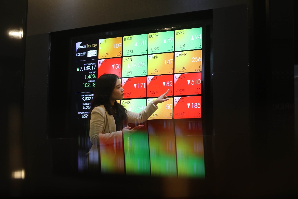 Saham lainnya yang juga melemah cukup dalam adalah SAPX yang turun 65,83% ke level Rp1.125, IBFN yang turun 63,83% ke level Rp17 per saham, dan saham VISI yang terjun 61,08% ke level Rp130 per saham.