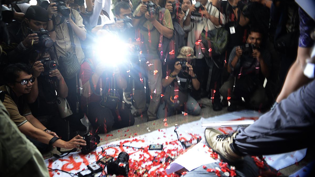 Setelah berada di depan ruang sidang, Deddy langsung dikepung sejumlah orang tak dikenal itu. Mereka mengintimidasi Deddy dengan berbagai pertanyaan, lalu menanyakan izin pengambilan foto, hingga data diri jurnalis itu.