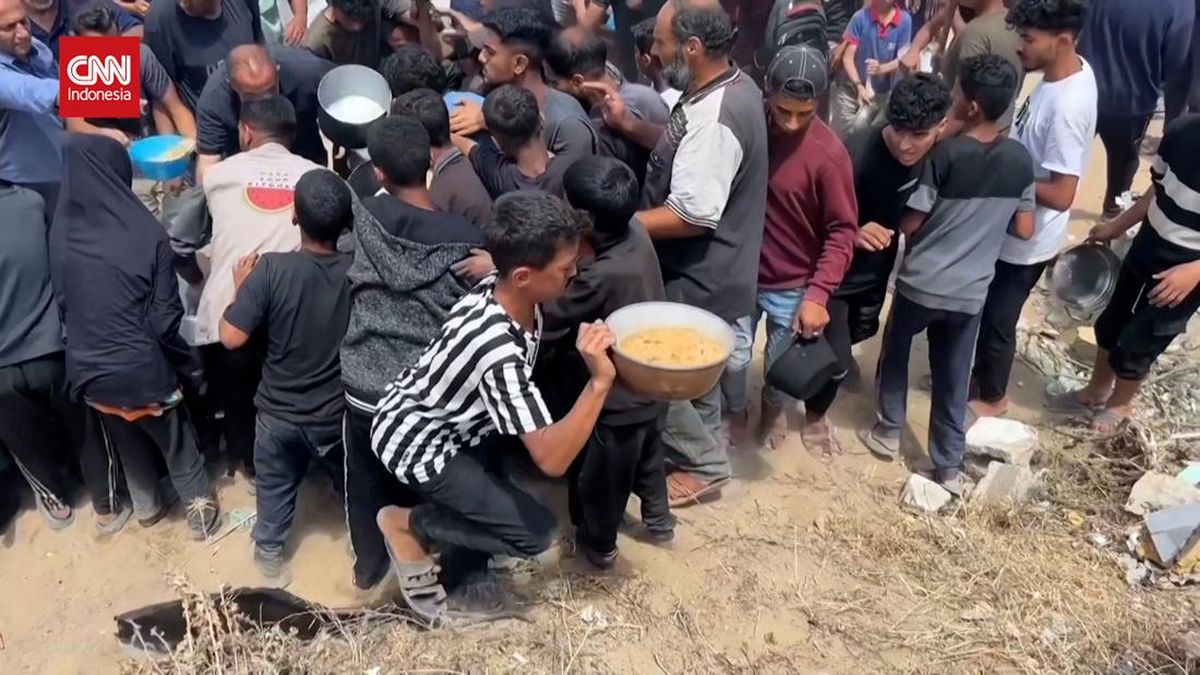 VIDEO: Pemandangan Pilu Warga Gaza Berebut Sup saat Kelaparan