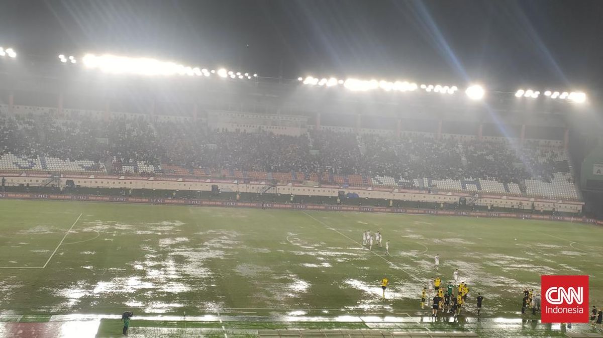 Pertandingan final Piala Presiden 2025 antara Oxford United versus Port FC terhenti sejak karena hujan deras di Stadion Si Jalak Harupat (SJH).